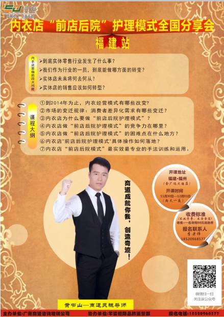 【震撼消息】商道免学费开课啦!《商道—内衣店“前店后院”护理模式分享会》福建福州站具体时间安排 :
